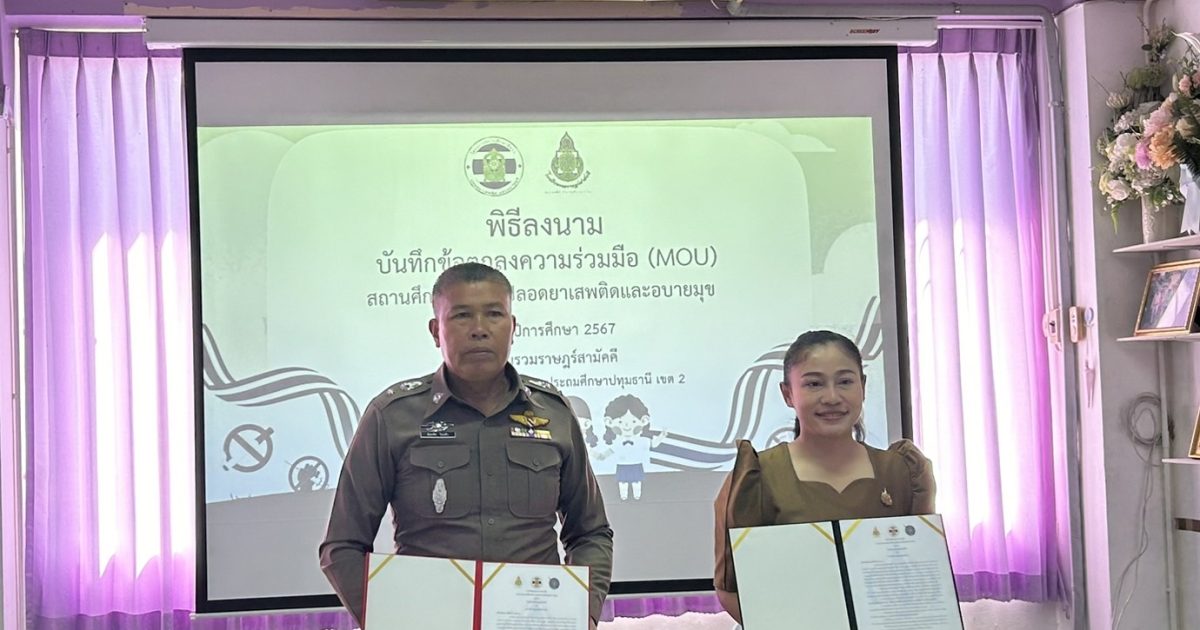 ว.4 ร่วม mou โครงการสถานศึกษาสีขาว ปลอดยาเสพติดและอบายมุข ณ โรงเรียนรวมราษฎร์สามัคคี