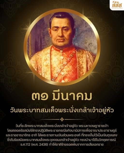 31 มีนาคม เป็น “วันที่ระลึกพระบาทสมเด็จพระนั่งเกล้าเจ้าอยู่หัว พระมหาเจษฎาราชเจ้า”