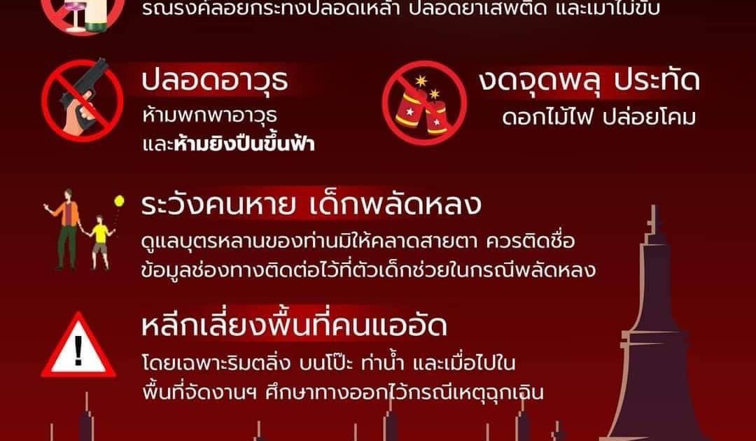 3.งดการจุดพลุ ประทัด ดอกไม้ไฟ และงดการปล่อยโคม โดยเฉพาะเขตพื้นที่ห้าม ที่กระทบการบิน ซึ่งอันตรายจากโคมยังอาจทำให้เกิดอัคคีภัยได้