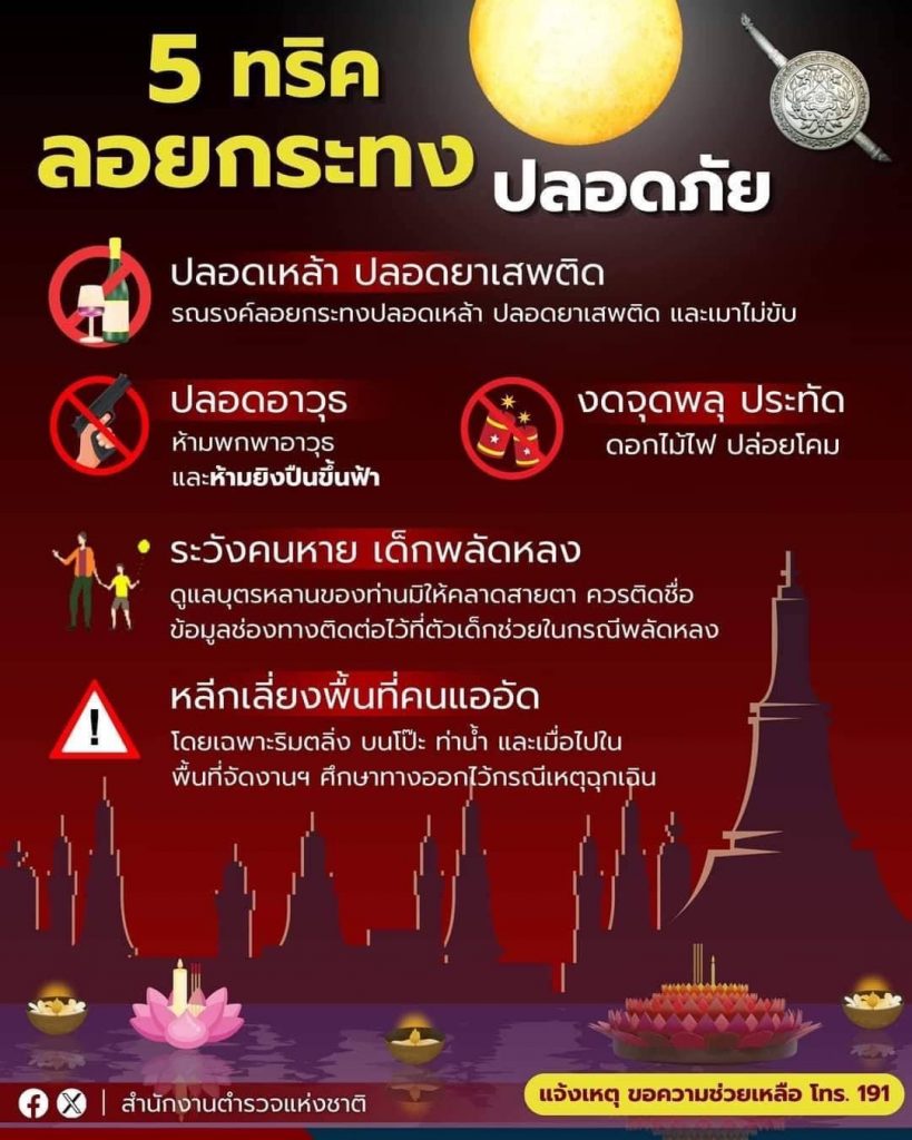 สำนักงานตำรวจแห่งชาติ แนะนำ 5 ทริค ทำกิจกรรมสืบสานประเพณีลอยกระทงปีนี้ อย่างปลอดภัย