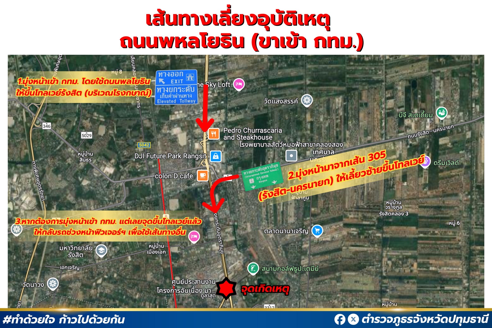 แผนที่เส้นทางเลี่ยงบริเวณจุดเกิดเหตุมาเพื่อประชาสัมพันธ์ให้พี่น้องประชาชนหลีกเลี่ยงเส้นทาง เนื่องจากการจราจรติดขัด 🚨 (เนื่องจากมีอุบัติเหตุ ถนนพหลโยธิน กม.29 ขาเข้า ปิดการจราจร)